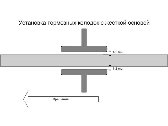 Установив обе колодки, заворачиваем гайки крепления колодок. При этом следим за тем, чтобы колодка не сдвинулась с места.